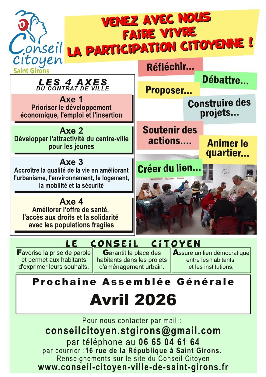 Site internet du Conseil Citoyen de la ville de Saint-Girons. Président Philippe Le Saint